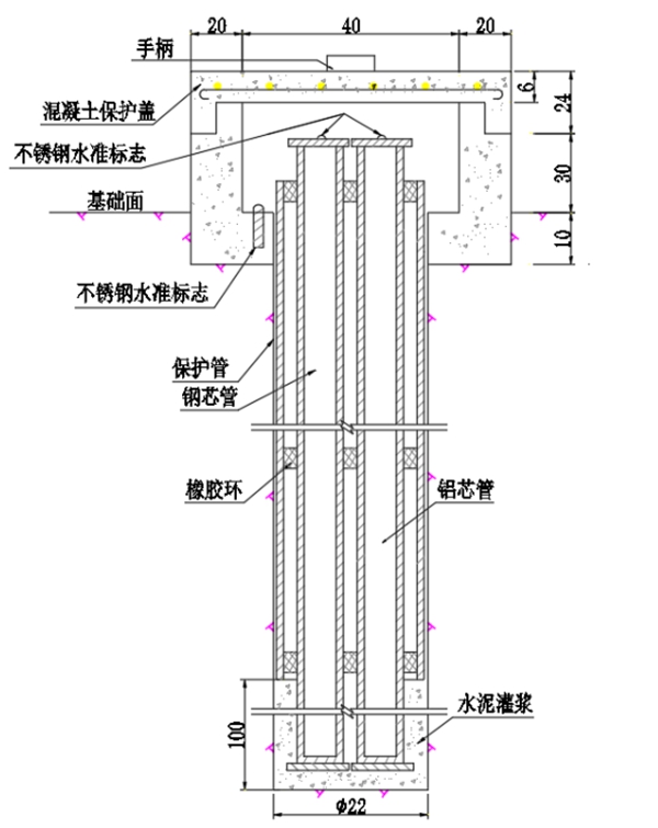 2、提供稳定基准作为垂直位移监测的工作基准点,其底部与深部基岩紧密结合,能稳定反映地表相对于基岩的垂直位移变化,为大坝、边坡等结构的变形监测提供可靠的参考基准。